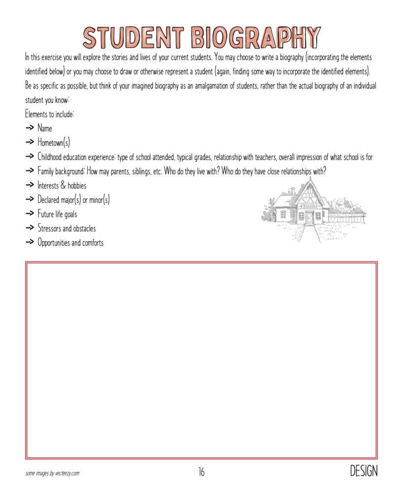 Complete the Student Biography prompt in the DF Workbook and think a little bit about the backstory and personal histories of students you’ve known and taught.