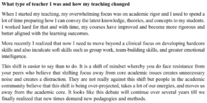 What type of teacher I was and how my teaching changed When I started my teaching, my overwhelming focus was on academic rigor and I