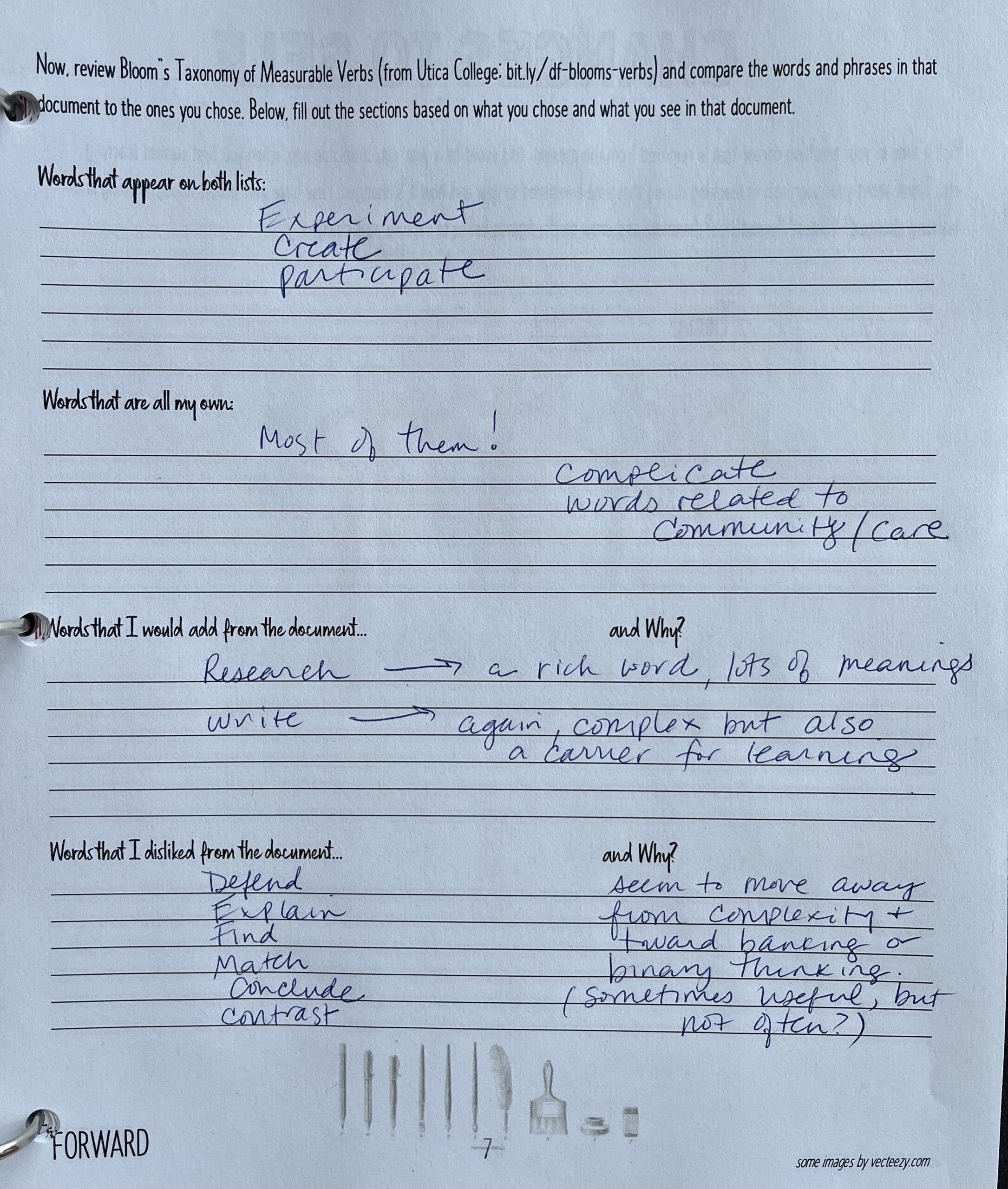 This was an interesting activity in terms of giving me a picture of my own teaching values, and how they interact with some of the more conventional verbs we use to talk about and develop teaching practices…