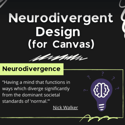 Presenter: Nic Helms How might we design our courses with neurodivergent students in mind? This