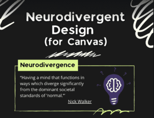 How might we design our courses with neurodivergent students in mind? This presentation will focus on Canvas and syllabus course construction, and will build on the ungrading philosophy of Asao Inoue and the neurodivergent activist scholarship of Nick Walker.